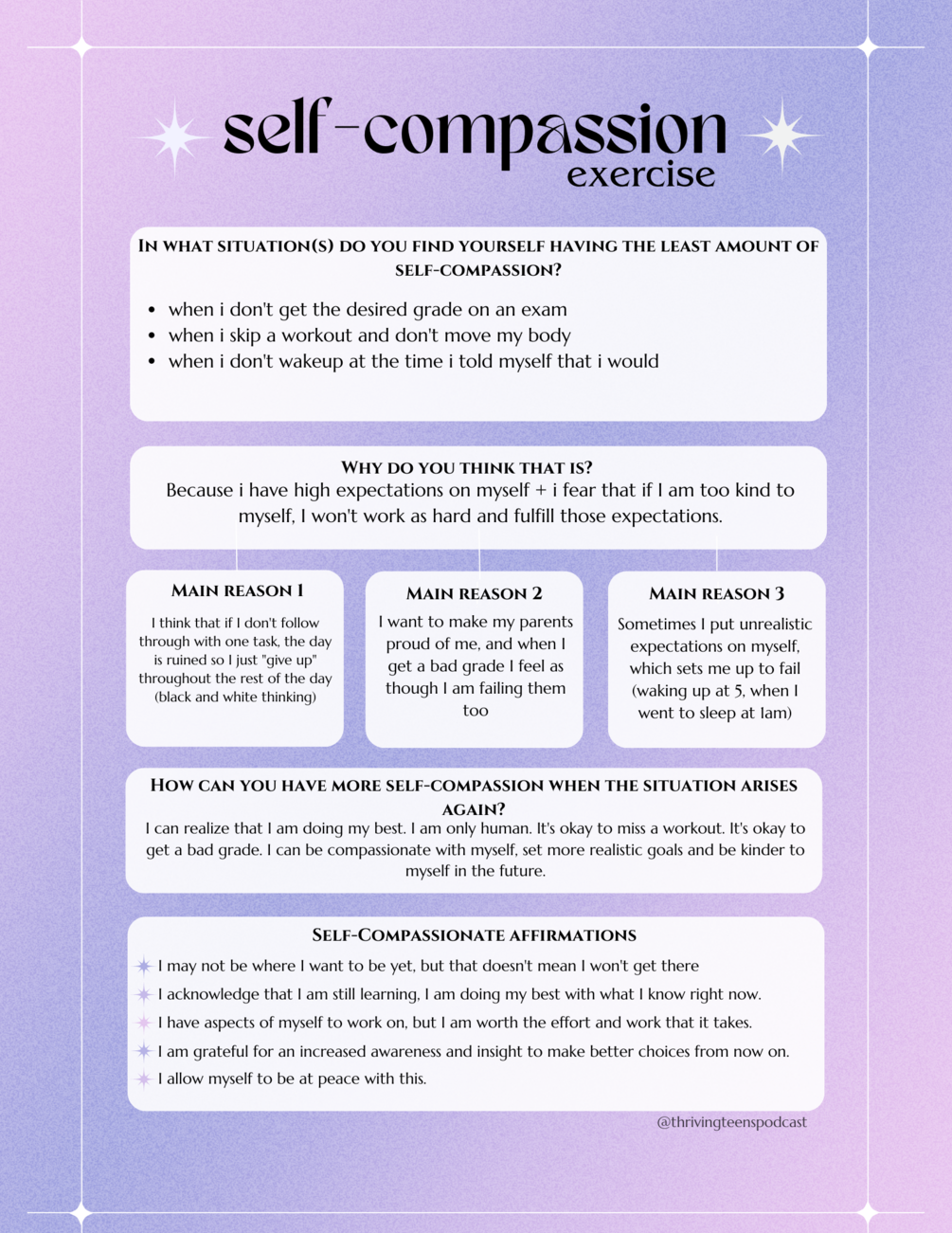 - use this worksheet to focus on self-compassion